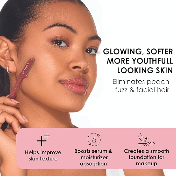 • QUALITY BLADE - The single, stainless steel Japanese blade are ultra-sharp to smoothly remove unwanted hair, peach fuzz, and dead skin buildup with ease and precision.