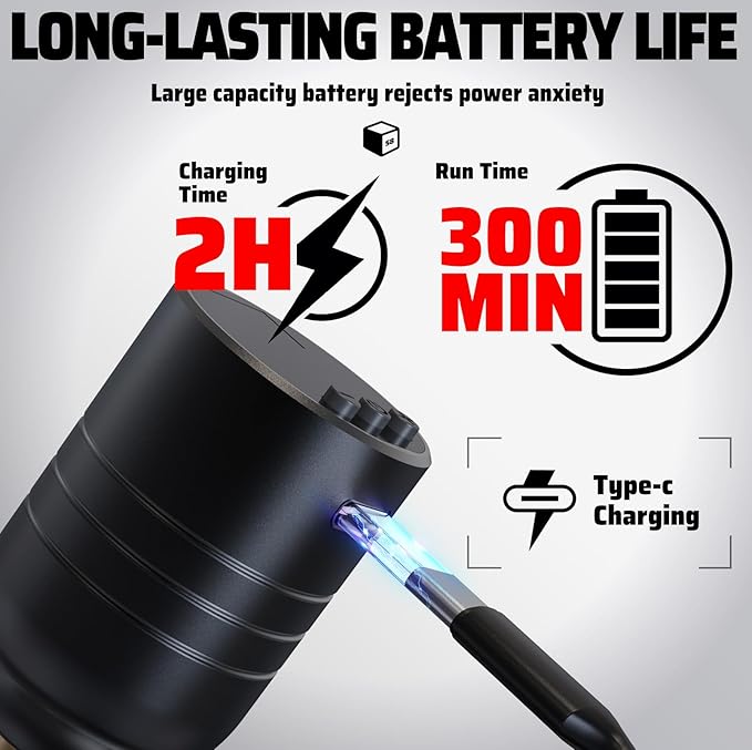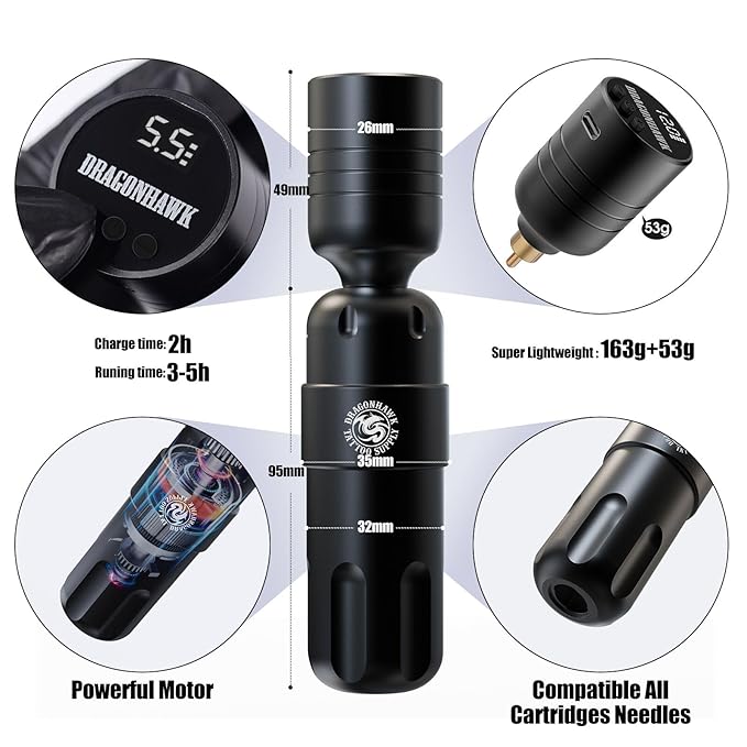 • Comfortable Tattoo Gun: Dragonhawk S8 tattoo pen, 3.5-inch ergonomic design with a comfortable grip; weighs 163g/5.7oz, ideal for precise control and portability; easy to use anytime, anywhere