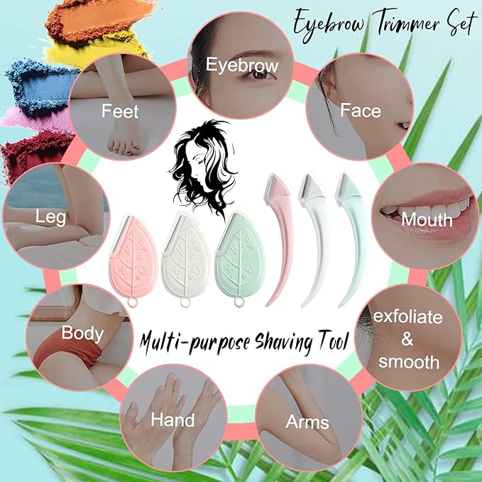 • 👩【Humanized Design】Our razor adopts an ergonomic arc design, which is very convenient and easy to use.Each blade has a protective cover, which is very convenient for travel and storage.Provide you with an excellent eyebrow trimming experience.