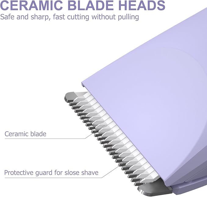 • Special Care/ Skin Friendly - Soft ceramic blades featuring advanced technology, performing well when it comes to groin hair, the armpit area, legs, with no any pulling or cutting. It comes with 2 adjustable trimming guards for different hair lengths