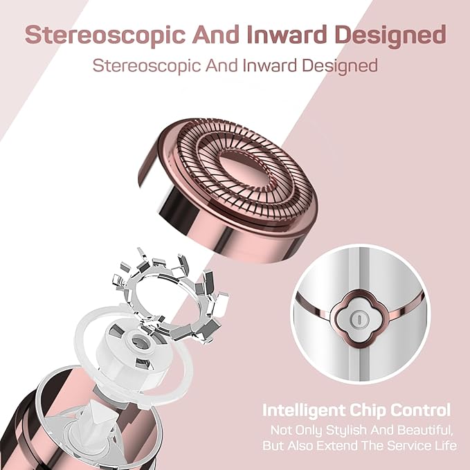 • 【2025 UPGRADES & INNOVATIVE TECHNOLOGY】The upgraded chip smart control button makes the hair remover for women more intimate to use and lasts longer. This face hair removal utilizes revolutionary Butterfly Technology that removes hair by microscopically paring it down by a spinning head covered by a plate.