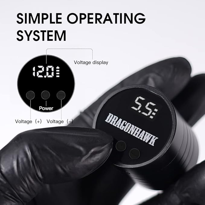 Dragonhawk Wireless Tattoo Kit, S12 Rotary Tattoo Pen Machine Gun, 2 Replaceble Batteries for Long Run Time, Tattoo Kit for Beginner Play & Learn