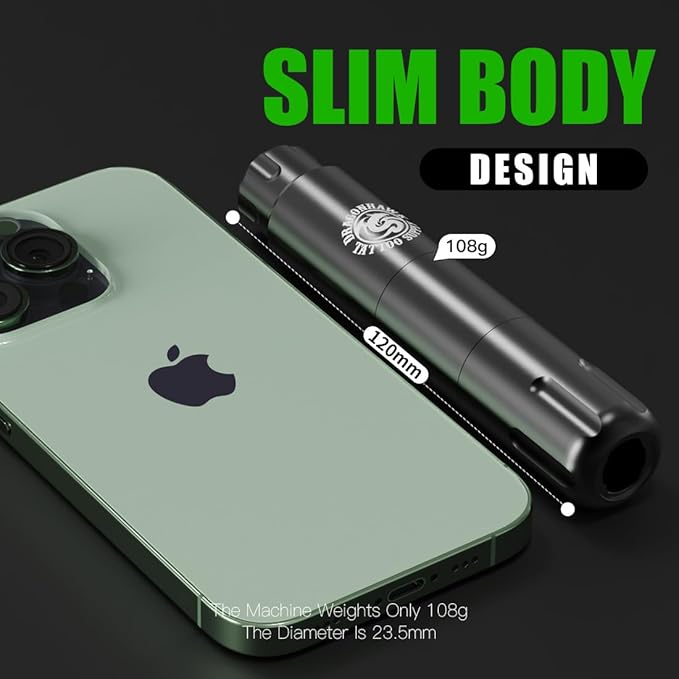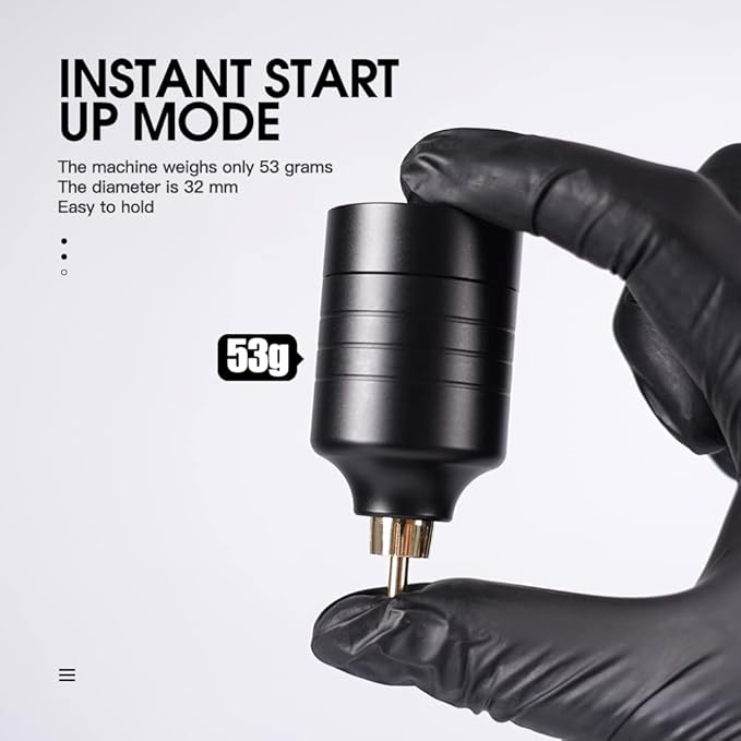 • Cordless Tattoo Kit: Enjoy maximum freedom with the cordless operation; equipped with a precision DC motor, it's lightweight(108 g), quiet, stable, and features a 3.0 mm stroke for perfect balance between lining and shading, enhancing tattooing skills