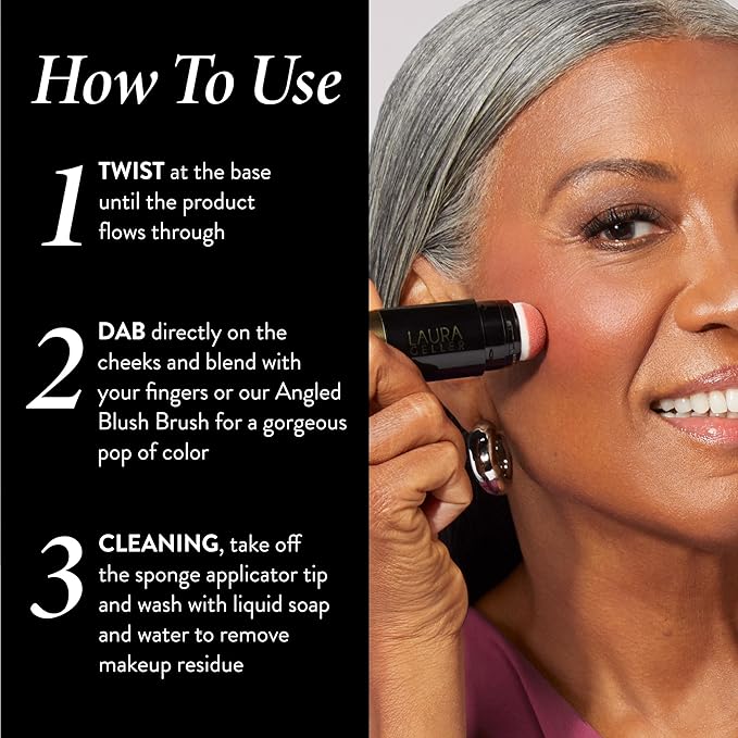 • HOW TO USE: Twist at the base until the product flows through. Dab directly on the cheeks and blend with your fingers or our Angled Blush Brush for a gorgeous pop of color. For regular cleaning, take off the sponge applicator tip and wash with liquid soap and water to remove makeup residue.