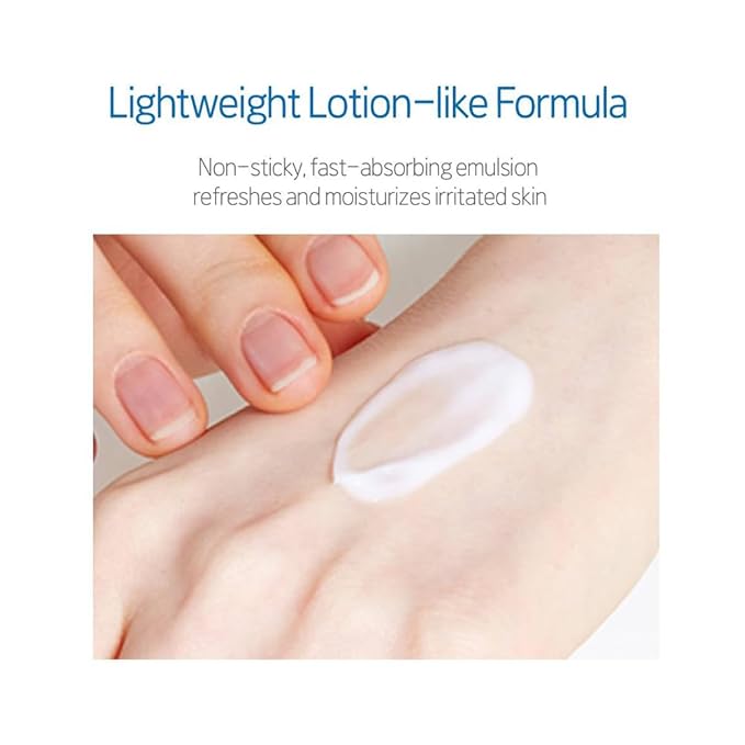 • Lightweight Lotion-like Formula: Non-sticky, fast-absorbing emulsion refreshes and moisturizes irritated skin