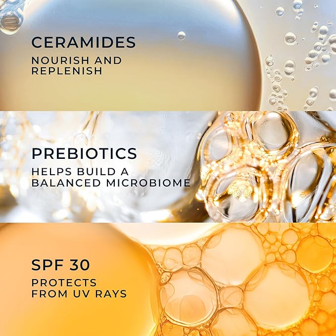 • DAY CREAM WITH SPF 30 DEVELOPED WITH DERMATOLOGISTS TO PROTECT SKIN BARRIER: Retrain plus maintain healthy skin in 14 days. Clinically proven to hydrate, brighten and smooth for healthy looking skin in just 14 nights. Formulated using 3 barrier- essential building blocks that are safe for sensitive skin- Ceramides, SPF 30 and Prebiotics.
