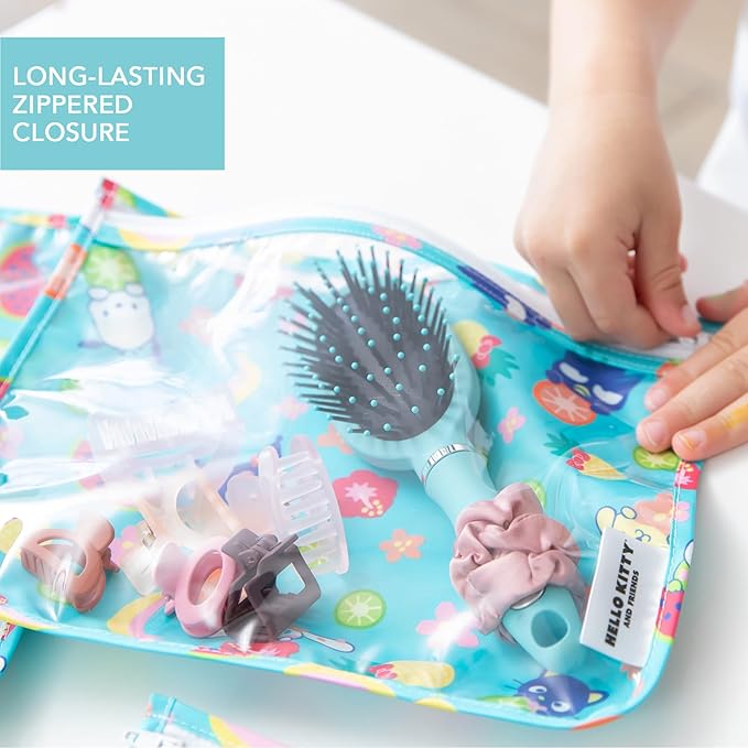 Bumkins Travel Bag, Toiletry, TSA Approved Pouch, Zip Bag, Quart Size Airline Compliant, Clear-Sided, Baby, Diaper Bag Organization, Makeup, Accessories, Packing, Set of 3 Sizes, Hello Kitty
