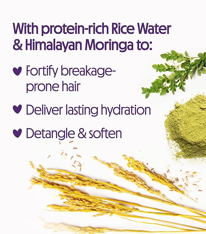• MADE WITH 98% NATURALLY DERIVED INGREDIENTS: Dermatologist Tested and infused with a protein-rich Rice Water & Moringa blend that helps fortify hair