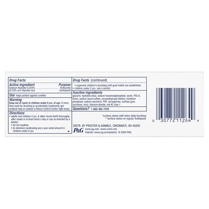 • 24-HOUR PROTECTION: Provides 24-hour active stain prevention against surface stains with twice-daily brushing using Crest 3D White toothpaste.