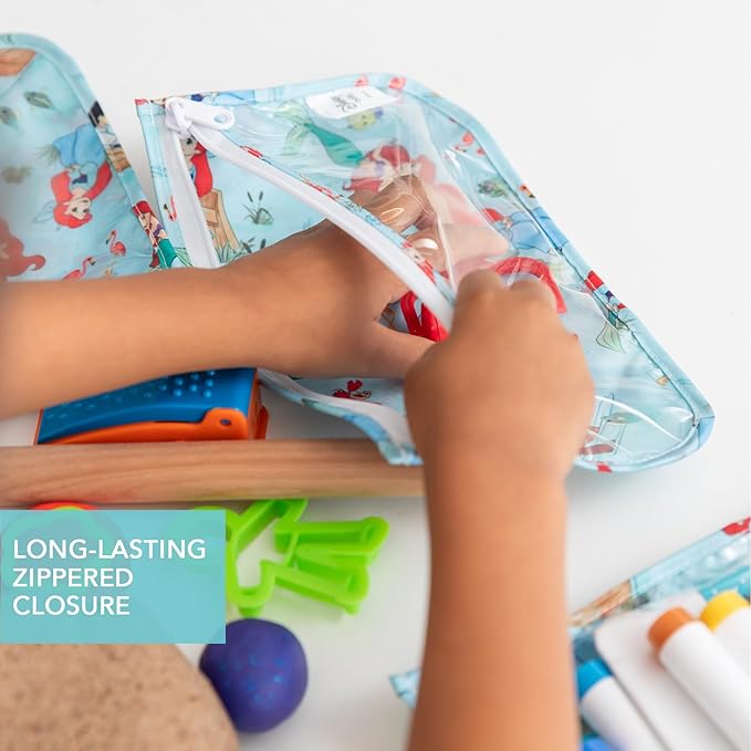 Bumkins Disney Ariel Travel Bag, Toiletry, TSA Approved Pouch, Zip Bag, Quart Size Airline Compliant, Clear-Sided, Baby, Diaper Bag Organization, Makeup, Accessories, Packing, Set of 3 Sizes