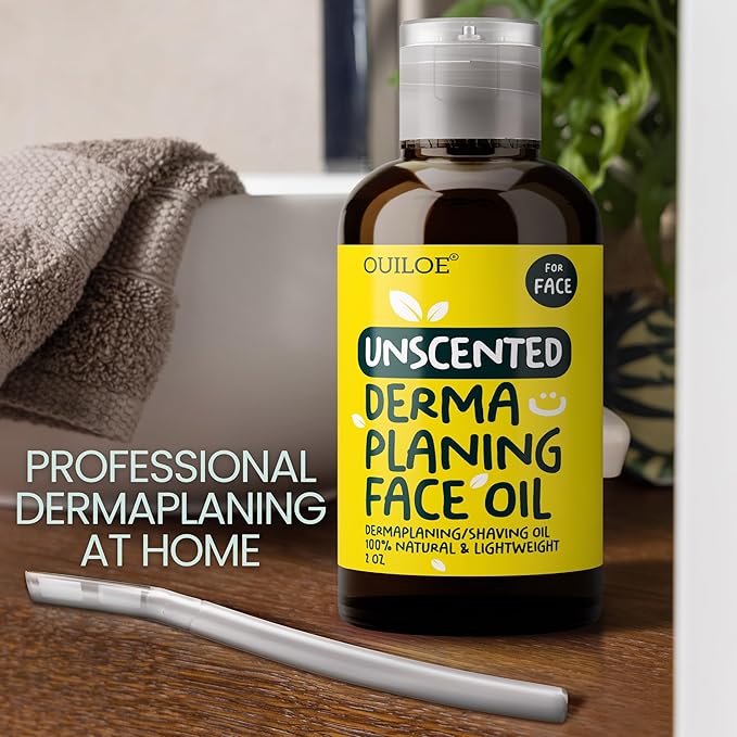 Dermaplaning Oil for Women - Face Shaving Oil for Oily Skin - Non Comedogenic, Fragrance Free, Organic, Natural and Lightweight - Use with Dermaplaning Tool for Face, 2oz by Ouiloe