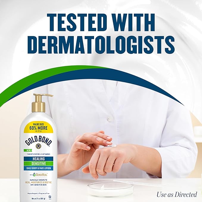 • Includes one (1) 21-oz. pump bottle of Gold Bond Sensitive Healing Daily Body & Face Lotion