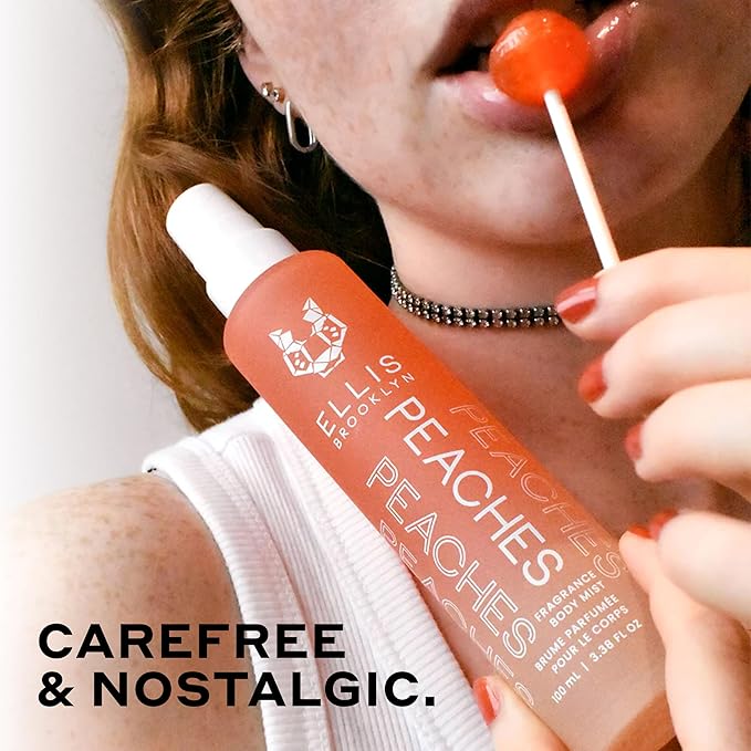 Ellis Brooklyn PEACHES Hair And Body Fragrance Mist - Fruity Floral Perfume Mist For Women with Sweet Peach, Rosebud, & Sandalwood, Vegan Perfume Made In The USA, 100ml 3.38 Fl Oz