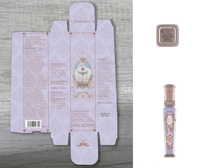 Flower Knows Violet Strawberry Rococo Glowy Lip Gloss,Moisturizing Shine Lip Oil,Hydrating Glitter Lip Plumper Makeup for Girls&Women,Vegan & Cruelty-Free,0.12 Fl Oz,1 Count (G03 Berry Bomb)
