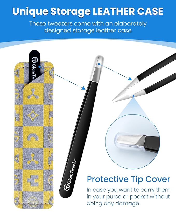 • 【Exclusive TRAVEL-READY Storage case】The GlamTweeler Expert Slant Tip Tweezers come with an elaborately designed storage leather case, which makes it easy and safe to carry in purse or for travel. This elegant storage pouch not only protects the tip's sharpness but also helps prevent accidental damage when not in use, very useful and convenient.