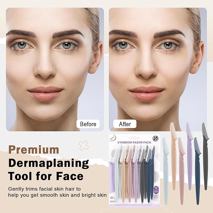- 【Precision for Dermaplaning】The areolae surface on the cutting edge and the smaller size of these facial razors for women face are gentle enough to remove the peach fuzz and provide a precise dermaplaning experience. These face razors for women are also great for eyebrow shaping and hair removal for your body, providing a versatile solution for all your hair removal needs.
