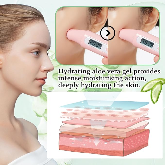 • ❤️【Moisturizing】Hydrating aloe vera gel provides intense moisturizing action, deeply hydrating the skin and replenishing the face with plenty of moisture for an energized, hydrated complexion.