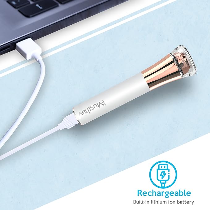 - ✨iMusthav Professional Stylishly Portable and Compact: Resembling a lipstick, this facial hair remover device for women combines elegance with practicality. Its compact design enables effortless storage in a makeup bag, making it ideal for use at home or while traveling.