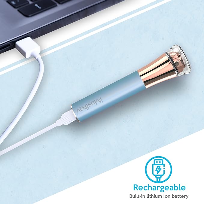 - ✨iMusthav Professional Stylishly Portable and Compact: Resembling a lipstick, this facial hair remover device for women combines elegance with practicality. Its compact design enables effortless storage in a makeup bag, making it ideal for use at home or while traveling.