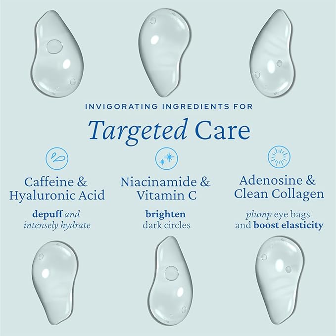 • REDUCES PUFFINESS & DARK CIRCLES: Formulated with powerful ingredients like Caffeine, Niacinamide, and Vitamin C, this eye gel targets puffiness, reduces dark circles, and brightens the skin around your eyes, giving you a refreshed look.