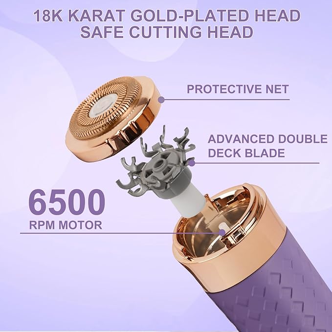 - Powerful Performance: With a high-speed 6500 RPM motor and an upgraded stainless steel blade, our women's face razors efficiently get rid of unwanted facial hair. The long-lasting battery provides more use time, making it perfect for home or on the go.
