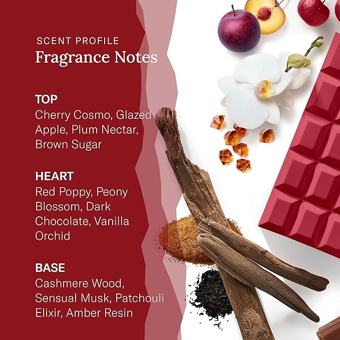 • Cherry Baby Scent Notes: Features an indulgent aroma of cherries and chocolate that envelops you, swirling in a flirty mist of red poppy and peony