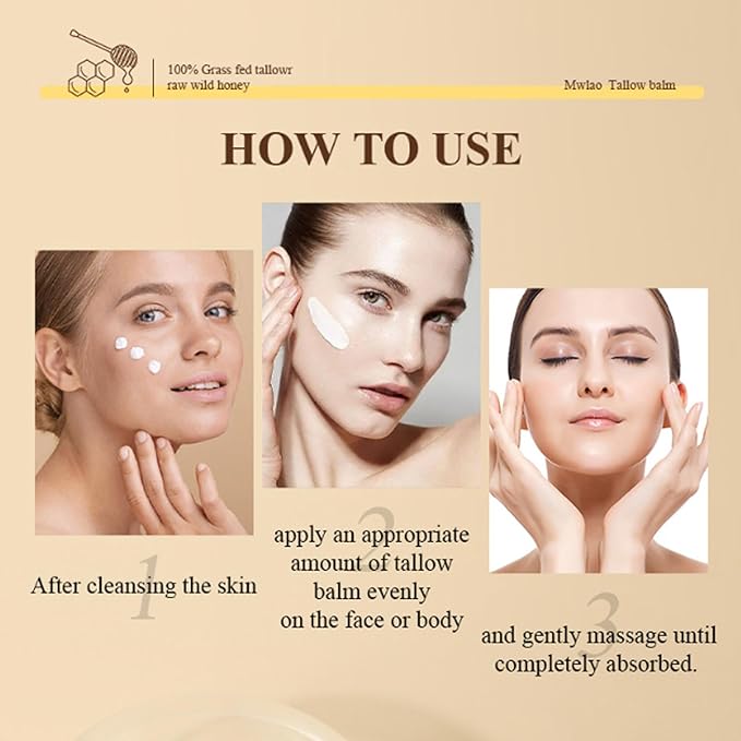 • 【 Premium Ingredients 】 Crafted from organic, grass-fed beef tallow and raw wild honey, this skin balm offers a blend of high-quality, responsibly sourced ingredients for optimal skincare.