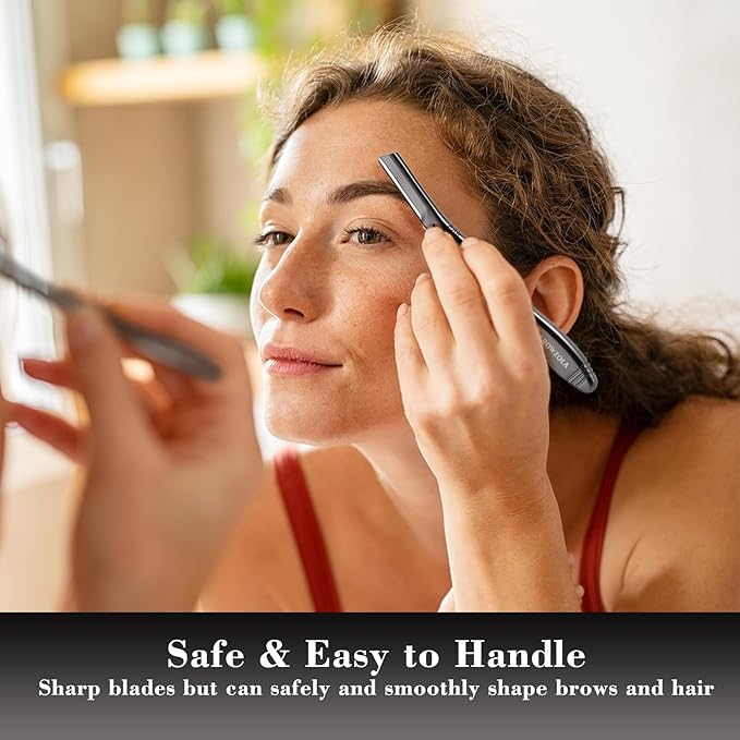 • Reusable Metal Facial Razor, EROWZOLA eyebrow razor handle is Ergonomically designed with 6 replaceable blades for a cost-effective, alternative that reduces plastic waste