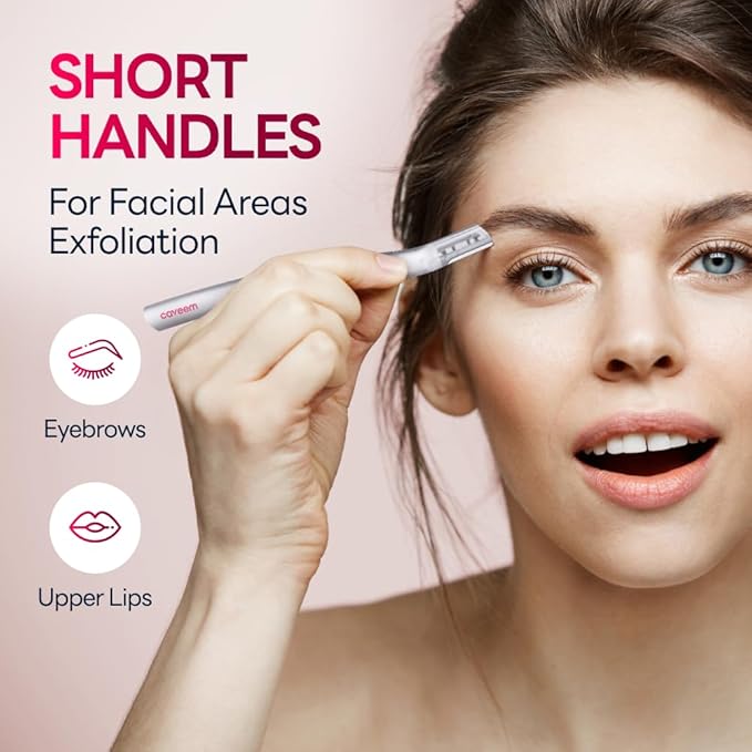 • SAFE EXFOLIATION : Our safety razors for women men are crafted from a stainless steel narrow-gauge Blades design. Use the longer for exfoliating the hair with your cheek, and remove the skin hair with your peach-fuzz with the shorter