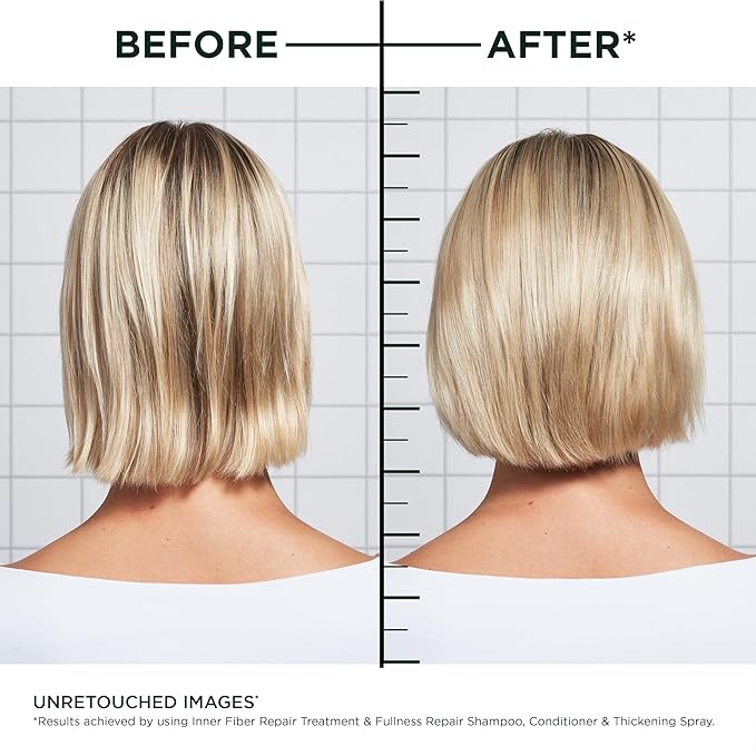 • System of Volumizing Hair Products: See visibly fuller, thicker hair, with up to 2X less hair fall due to breakage from brushing vs a non-conditioning shampoo with use of system of inner fiber repair treatment and fullness repair shampoo and conditioner