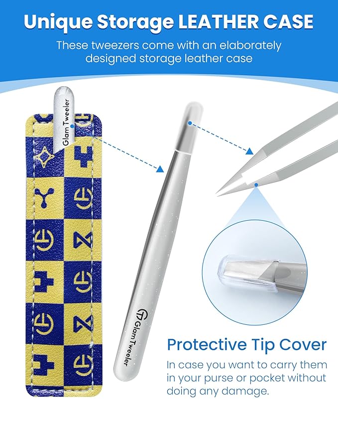 • 【Exclusive TRAVEL-READY Storage case】The GlamTweeler Expert Slant Tip Tweezers come with an elaborately designed storage leather case, which makes it easy and safe to carry in purse or for travel. This elegant storage pouch not only protects the tip's sharpness but also helps prevent accidental damage when not in use, very useful and convenient.