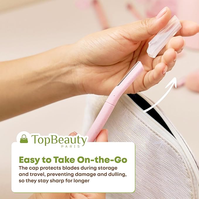 Paris Women Facial Eco Razors - 3 pcs per pack - Wheat Straw Eyebrow Razors - Multipurpose Facial Body Hair Peach Fuzz Removal Trimmer Shaver - Dermaplaning Tool - Protective Safety Cover