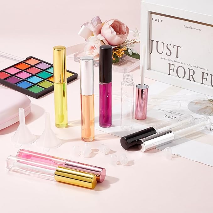 • 8PCS 4 COLORS LIP GLOSS TUBES: You will get 8pcs 10ml empty lip gloss tubes in 4 colors(pink, black, silver, gold), each color 2pcs, comes with 2pcs 2ml dropper pipettes and 2pcs funnels, enough to meet your daiy DIY need