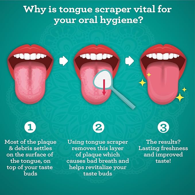 • HELPS PREVENT BAD BREATH: Experience fresher breath & enhanced oral hygiene with GuruNanda Tongue Scraper. Regular use helps remove debris, reduces bad breath, & helps improve taste by thoroughly cleaning the tongue's surface.