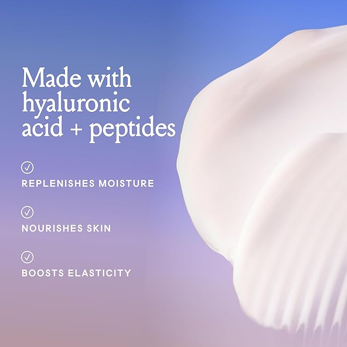 • HYALURONIC ACID + PEPTIDES: To replenish moisture and boost elasticity