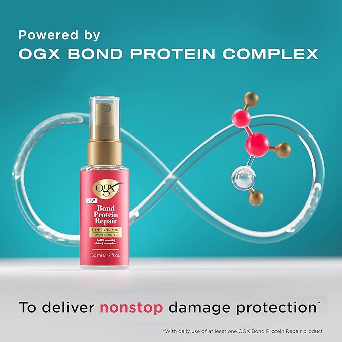 • REPAIR & PROTECT: 1.7-fluid ounces of OGX Repair & Protect Bond Protein Repair 3-in-1 Oil Mist to smooth dry, damaged hair for 24 hours