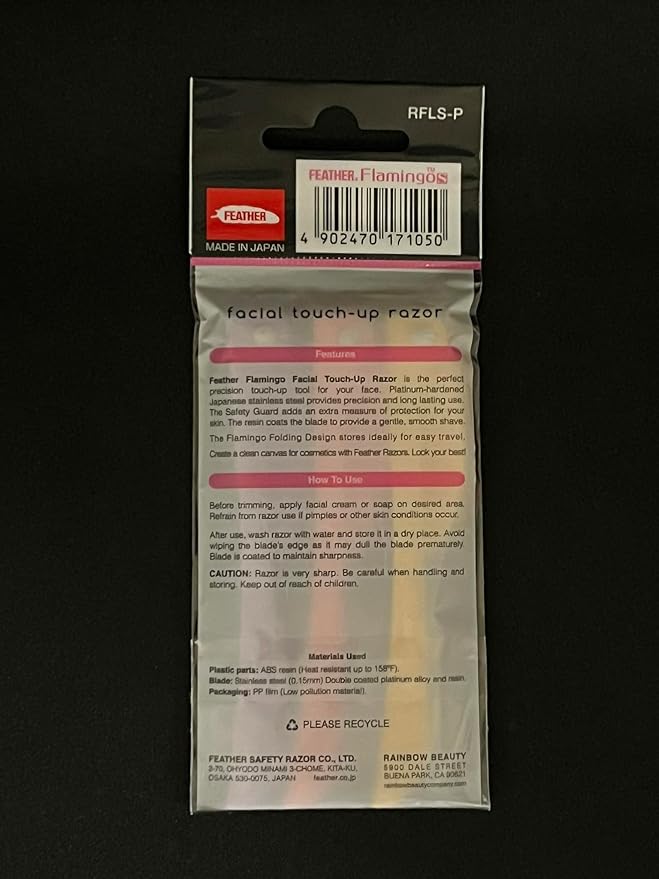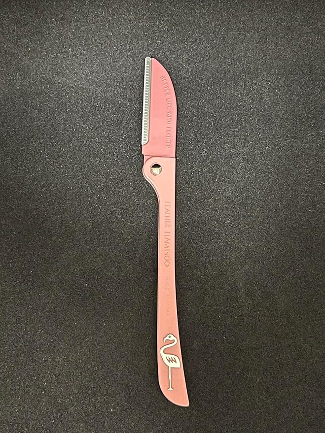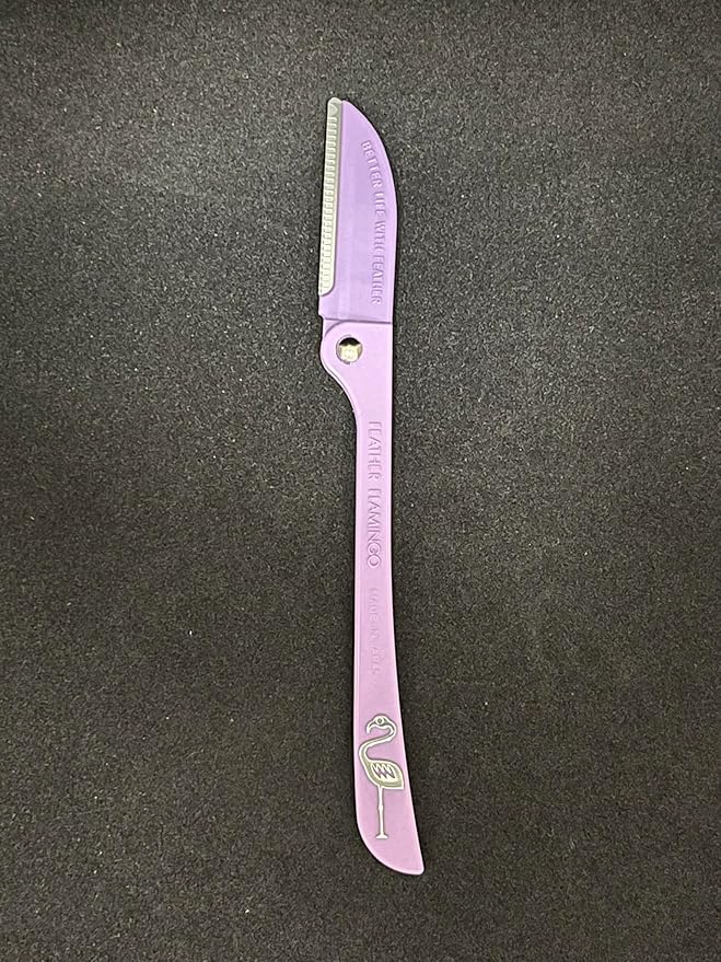 • Feather Flamingo facial touch up razor is an essential tool for grooming eyebrows and dermaplaning face. It is designed to remove fine hairs and peach fuzz for a smoother and more polished look.
