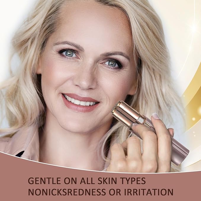 • Women's Painless Hair Remover for Women, Battery Powered Facial Hair Shaver for Lips, Chin, Neck, and Cheek with 2 Replacement Heads and 1 Battery