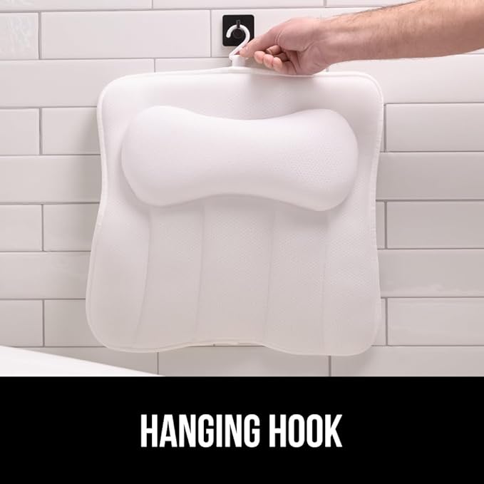 GORILLA GRIP Mesh Bath Pillow for Tub, 6 Powerful Suction Cups, Oversized Headrest with Breathable FlexComfort Technology for Neck, Head, Back Support, Luxury Machine Washable Bathtub Must Haves White