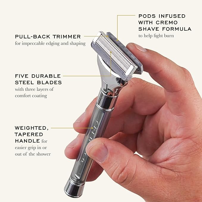 • Stay sharp with four replacement cartridges, infused with Cremo's unique shaving cream formula