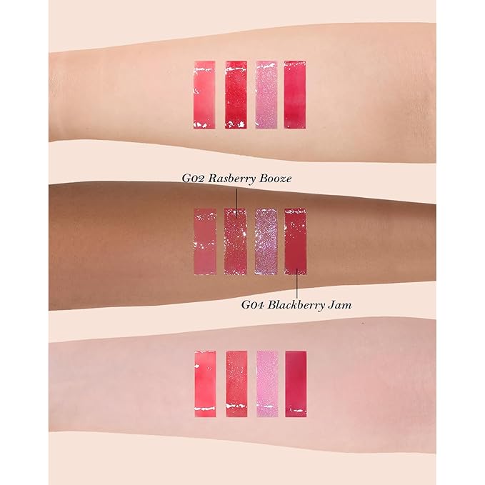 • Comprehensive Beauty Collection:Discover a luxurious assortment including: Lip Gloss (G02 Raspberry Booze + G04 Blackberry Jam) ×2, Blush (G01 Romantic Blossom + G02 Little Cranberry) ×2, Blush Brush, Hair Clip, All beautifully arranged in an elegant gift box.