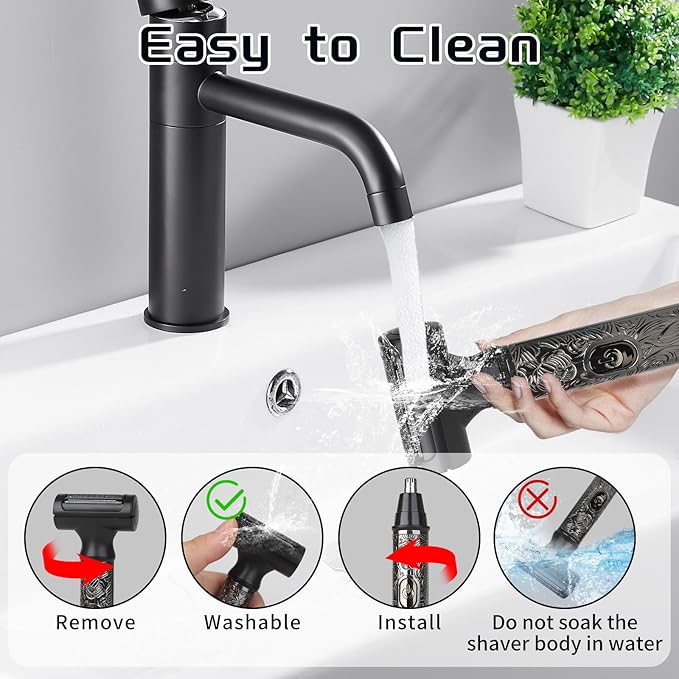 - Wet & Dry Use, IPX7 Waterproof:Enjoy versatile shaving in or out of the shower with our IPX7 waterproof electric razor. Use it with shaving foam or gel for a smoother experience, or go dry when you're in a hurry. Easy to rinse and clean—just place the head under running water
