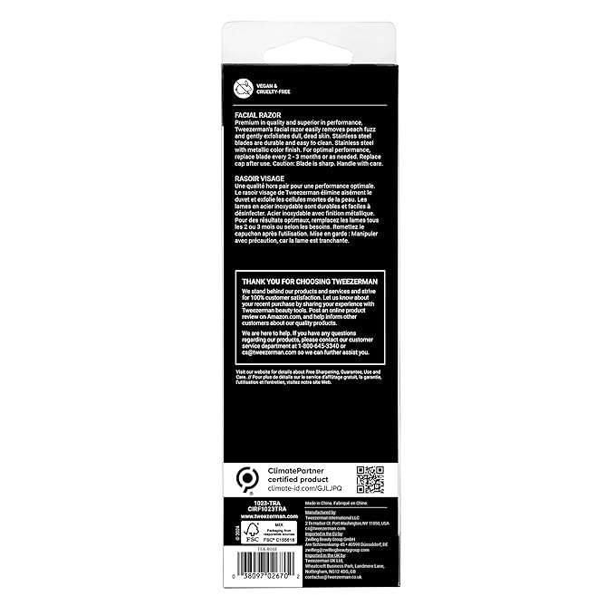 • Premium in quality and superior in performance, now available in Tea Rose. Tweezerman's Facial Razor provides easy removal of peach fuzz while gently exfoliating skin. Designed to be reusable with refillable blades & high-quality stainless steel.