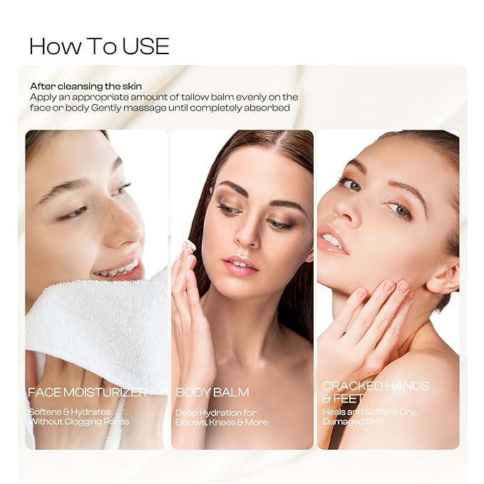 • Easy to Use: Just apply the tallow cream to dry skin, massage and absorb it. You can enjoy the moisturizing and hydrating treatment of tallow cream anytime, anywhere. It can be used day and night. The soft texture of the paste will be quickly absorbed by smooth skin