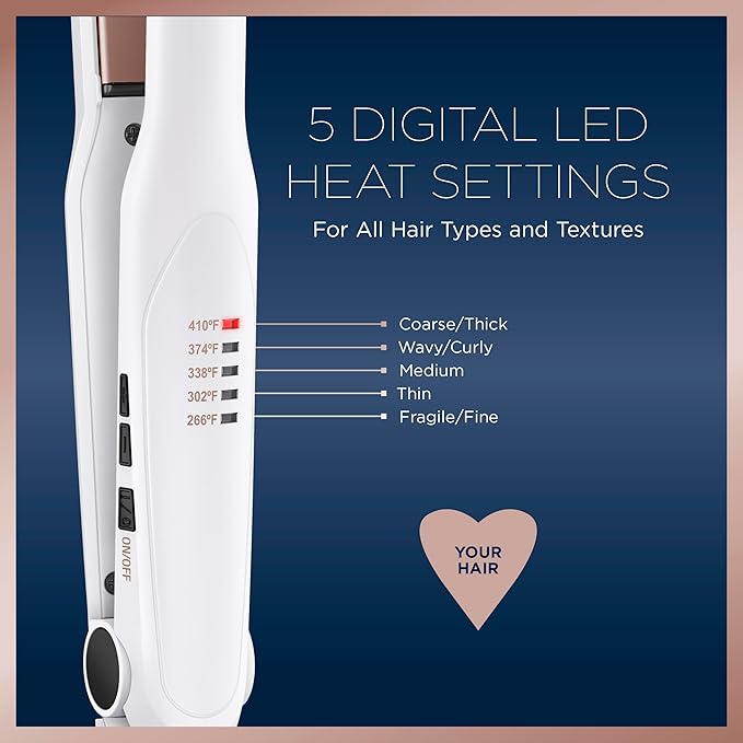 • Styling Control: This ceramic flat iron has extra long floating plates for faster styling with less damage, 5 heat settings including a high heat setting of 410Β°F, and uniform heat recovery for consistent styling