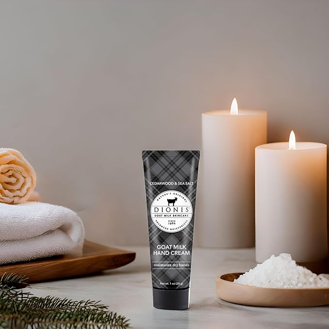 Dionis - Goat Milk Skincare Scented Hand Cream, Travel Size Self Care Moisturizing Lotion For Women, Vitamins & Minerals Hydrate Dry Skin - Cruelty Free, Cedarwood & Sea Salt, 1oz Set of 6
