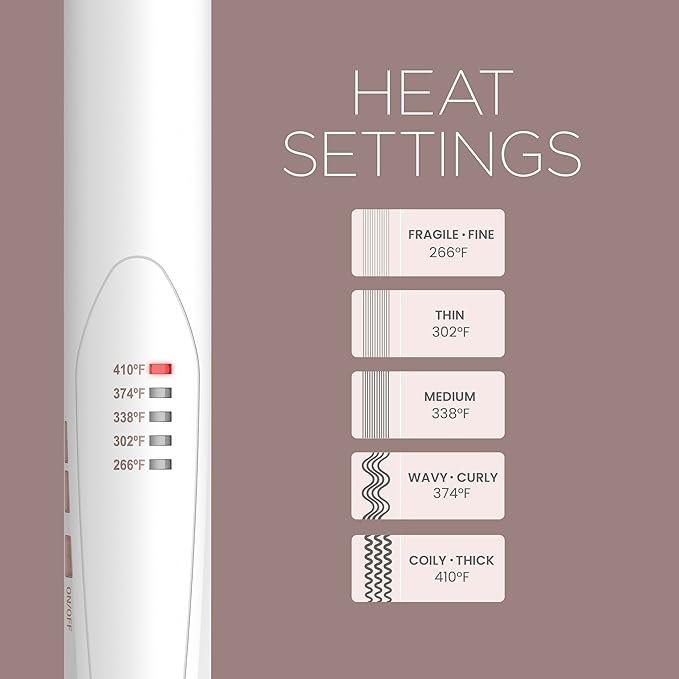 • Styling Control: This ceramic flat iron has extra long floating plates for faster styling with less damage, 5 heat settings including a high heat setting of 410Β°F, and uniform heat recovery for consistent styling