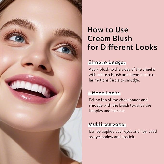• VERSATILE CREAM BLUSH: This makeup cream Blush is suitable for various makeup needs, and can be applied to the cheeks, lips, and eyes. With a variety of color options, it enhances all skin tones for a natural, radiant finish.