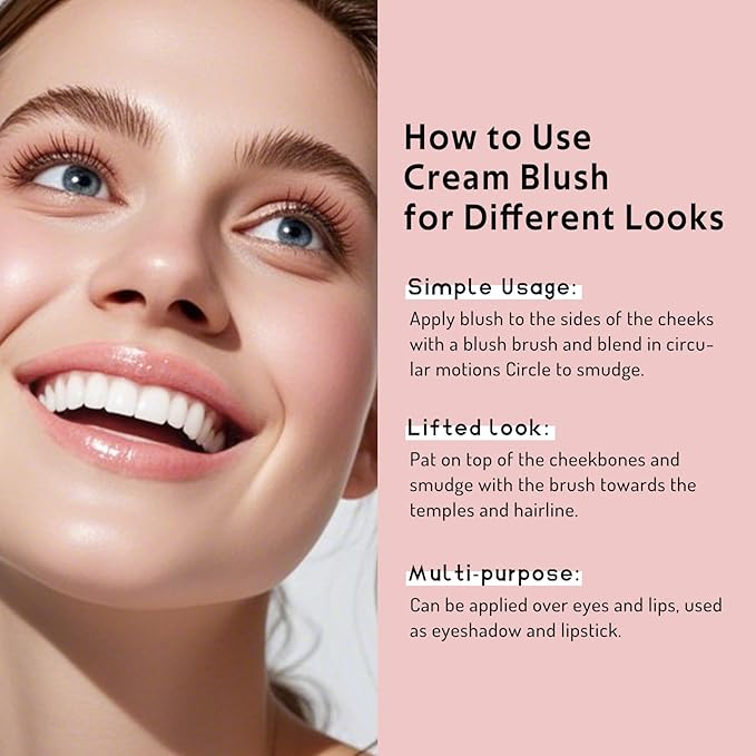 • VERSATILE CREAM BLUSH: This makeup cream Blush is suitable for various makeup needs, and can be applied to the cheeks, lips, and eyes. With a variety of color options, it enhances all skin tones for a natural, radiant finish.
