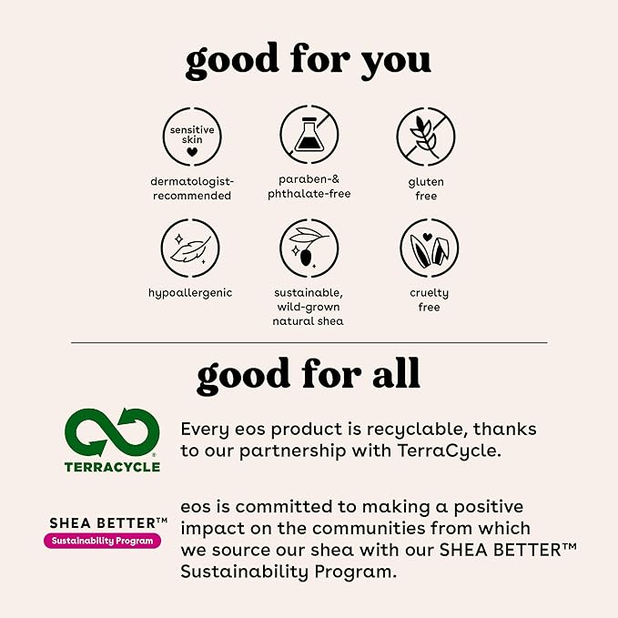 • SUSTAINABLY-SOURCED INGREDIENTS: eos lip balms have wild grown, sustainably sourced, natural shea butter and oil to leave your lips smooth and nourished